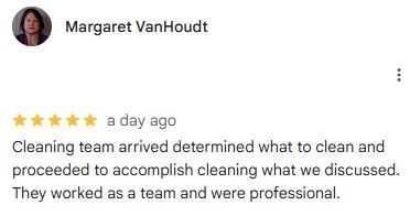 “My mother has recommended you. By far the best cleaning we have ever had.”